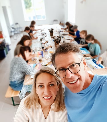 Mūsų komandoje dirba Rita, VDA/LSMU dailės terapijos magistrantė, kuriai tikslų padeda siekti ir kitos jos kompetencijos: grafinio dizaino bakalauras, neuroedukacija . Kitas komandos narys - Dalius, emocijų specialistas, neuroedukatorius, pedagogas, fotografas, o šiuo metu studijuojantis Integruoto kūno ir judesio terapijos institute UK (Institute for Integrative Bodywork and Movement Therapy (IBMT) ) Tai programa, kuri akredituota tarptautiniu sertifikatu. (ISMETA. International Somatic Movement Education and Therapy).
